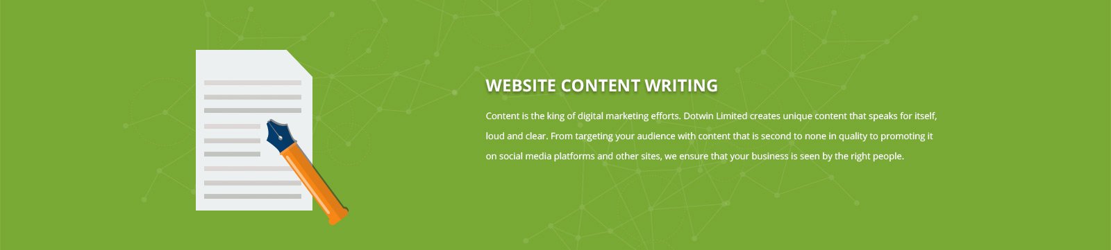 At Dotwin, you will find an experienced team of website content writers, web designers and digital marketers. We ensure that your website is compellingly-designed while adding effective and engrossing content that puts your business right in the eyes of your potential customers.